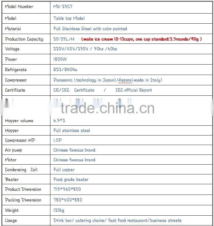 2016 Ce Approved Commercial Soft Ice Cream Machine MK25CT With Food Grade Beater and Airpump