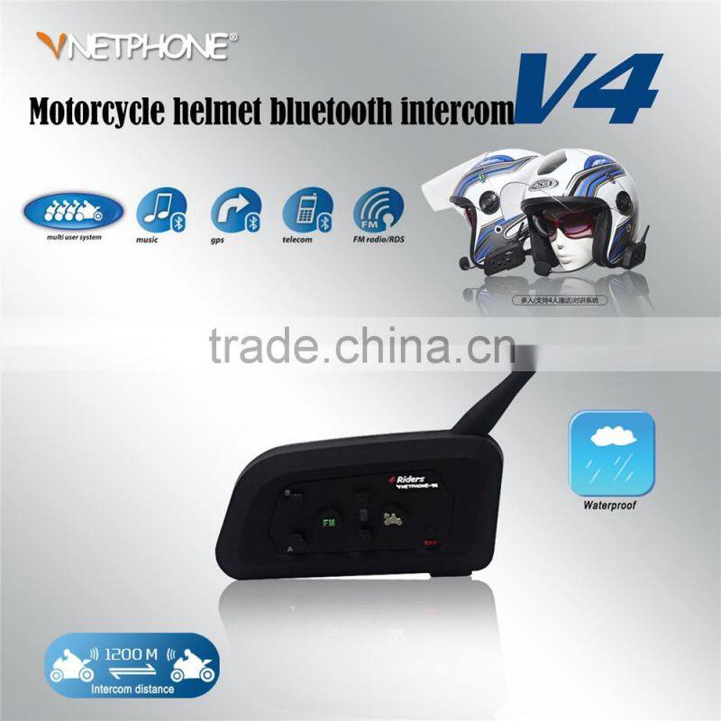 2016 V4 1200 Meters 4 Riders Full Duplex Talking Same Time Helmet Wireless Walkie Talkie With Bluetooth Headset
