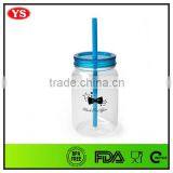 540ml Single Wall Plastic Cold Drinking Mason Jar With Straw