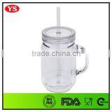 597 ml /20 oz Plastic Beverage Mason Jars With Handle and Straw