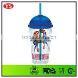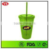 BPA Free 450 ml Double Wall Custom Printed Plastic Cup With Straw and Lid