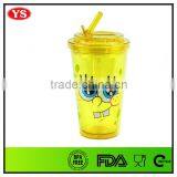 2015 Popular 450 ml Insulated Plastic Water Bottles With Straw and Lid