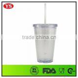 Acrylic Plastic Insulated Double Wall Tumbler With Straw and Lid 16 Ounce