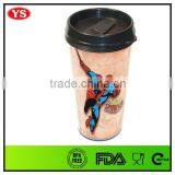 16 Ounce Diy Paper Insert Double Wall Plastic Cup With Lid