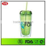 Eco Customized 16 Ounce Double Wall Reusable Tumbler Plastic With Straw