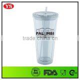 Promotional Bpa Free 24oz Plastic Double Wall Drinking Tumbler With Straw