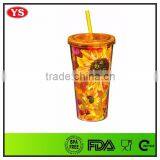 Customize 16 Ounce Plastic Double-deck Tumbler With Straw