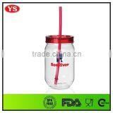 540ml Food Grade Single Wall Plastic Drinking Jar With Lid and Straw