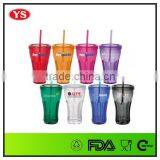 600ml Bpa Free Clear Single Wall Plastic Tumbler With Straw
