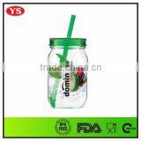 540ml Food Grade Single Wall Plastic Drinking Jar With Lid and Straw