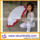 Straight White Umbrella Flower Umbrella With Lace Decoration