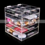 Makeup Display Organiser Box Acrylic Cosmetic Lipstick Brush Holder With 3 Drawers