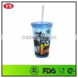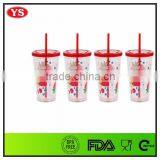 Reusable Double Wall 16oz Plastic Tumbler With Straw for Juice