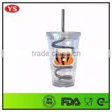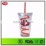 Bpa Free Insulated 450 ml Plastic Ice Beverage Tumbler With Spiral Straw