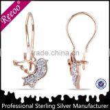 Pure 925 Sterling Silver Bird Earrings China Rose Gold Silver Drop Earrings