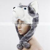 Cartoon Wolf/Penguin Cute Fluffy Plush Warm Hat Cap Scarf Earmuff Mascot