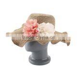 Cute Women Roll Brim Straw Hat Flower Vintage Summer Beach Folding Floppy Cap