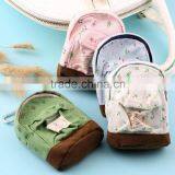 Fashion Floral Pattern Mini School Bag Canvas Pencil Case Key Purse Wallet