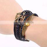 Owls Wings Charm Leather Suede Wrap Bracelet