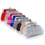 Women Satin Crystal Clutch Party Wedding Purse Soft Evening Bag Bridal Handbag