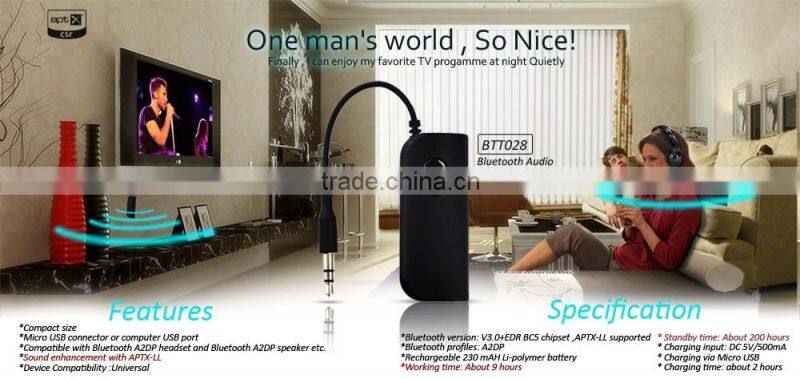 Bluetooth Transmitter for 3.5mm Jack, Hot Selling Bluetooth Adapter for Ipad With APTX-Low Latency-BTT028