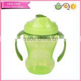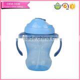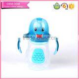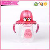 Colorful Cute Designed Plastic Baby Drinking Bottle With Handle Sippy Cup With Straw