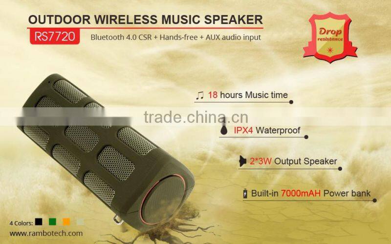Home > Products > Bluetooth Speaker > High-end Bluetooth Speaker 3w*2 Outdoor Waterproof Bluetooth Speaker Power Bank Function Supported-RS7720