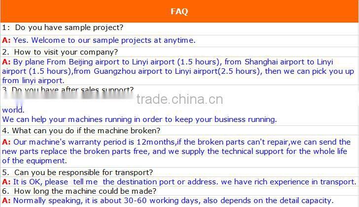 1). If buyers visit our factory and check the machine, we will show you sample running machine