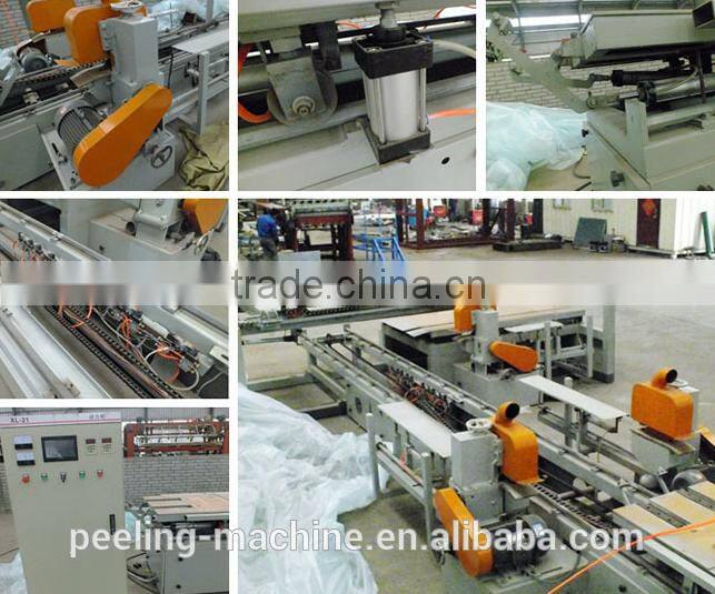 This plywood saw cutting machine is composed by infrared positioning, pre-loading device, longitudinal trolley fasten part, longitudinal trolley chains transmission,longitudinal saw heads,transverse trolley,transverse saw heads, transverse trolley chains transmission,automatic stacker.all working process is controlled by PLC.So in plywood /particle board/block board production,final size cutting will be completely automatic edge cutting and stacker.