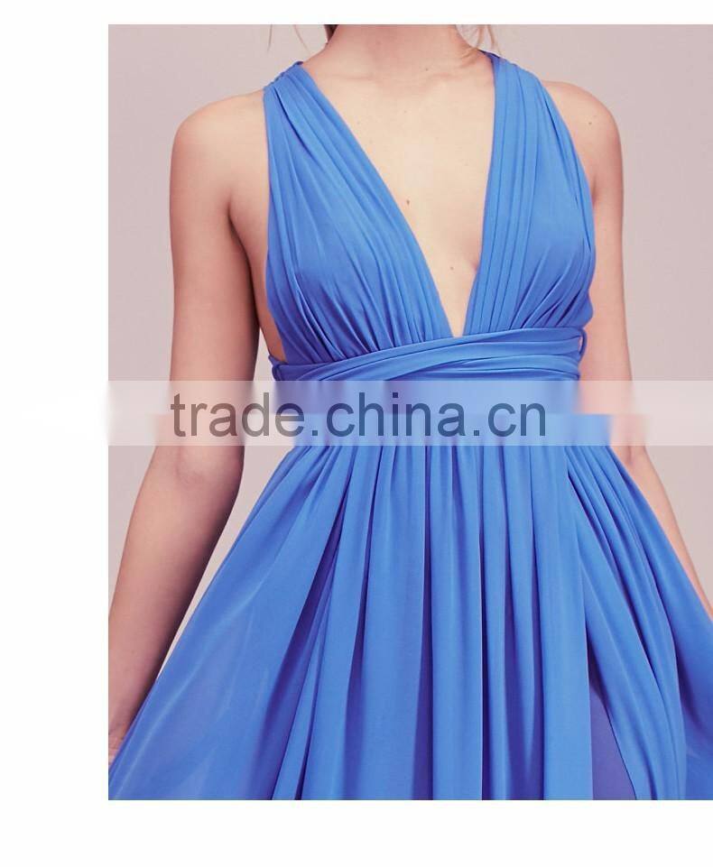 Plain dye blue tunic skirt elegant backless sleeveless evening dress