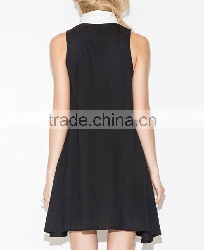 Women Crew Neck Short Sleeve Black Tank Mini Dress