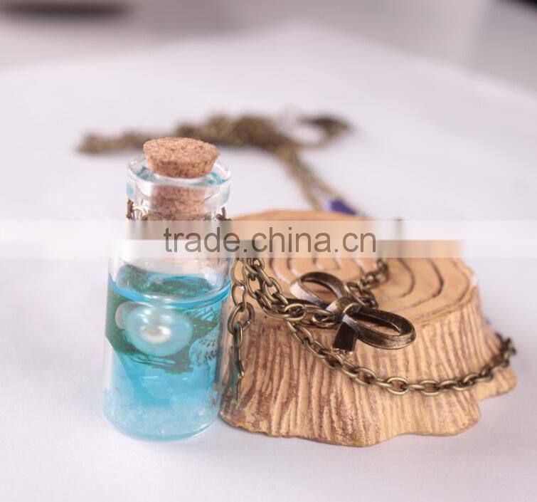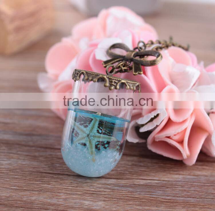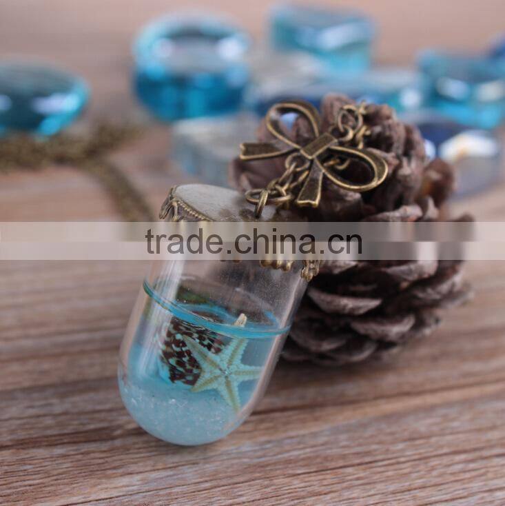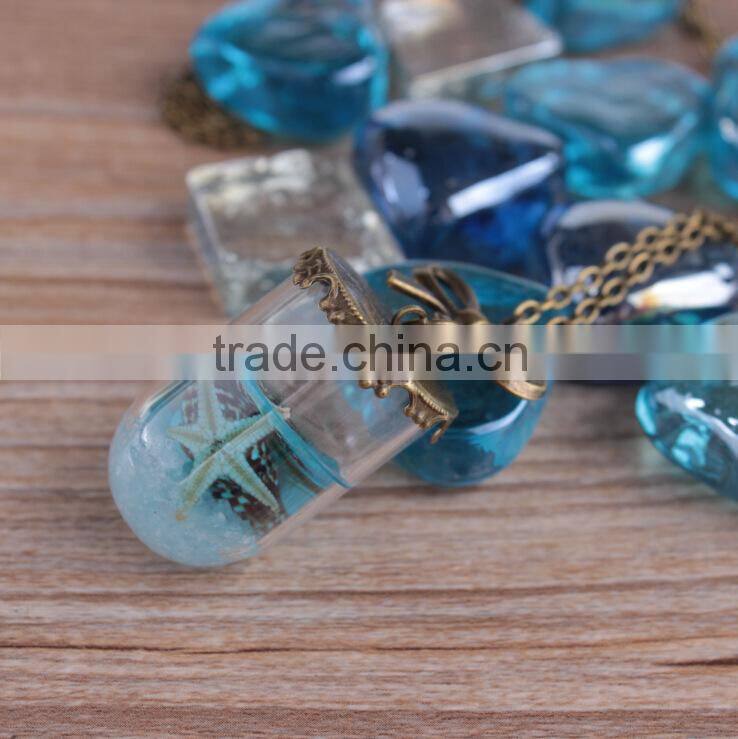 2016 New Arrival !!! Glass Ball Jewelry Vintage Style Sea Shell in Tube Glass Wish Vial Glass Bottle Necklace