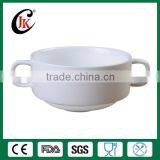 Hot Sale Cheap White Two Handle Ceramic Soup Bowl Wholesale