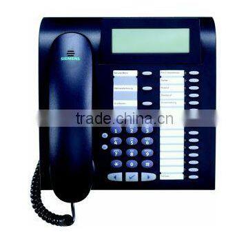 The Siemens OptiPoint 500 Advance model is the most highly functional of the OptiPoint 500 range and is suitable for executives, admin assistants and call centre agents alike. The OptiPoint 500 Advance is compatible with the HiCom 150H and 300H and the HiPath 3000 and 4000 telephone systems, when connected to a digital extension. The OptiPoint 500 Advance comes with nineteen programmable features keys with LEDs and a shift key to allow two functions to be programmed in to each key. The 2-line x 24 character LCD screen is backlit making it easy to read and OptiGuide navigation keys provide easier access to commonly used features such as outside lines or internal extensions. The OptiPoint 500 Advance is a full duplex telephone, the duplex hands free speaker, with two volume control buttons, allowing two way conversations without clipping. In addition this telephone has on-hook dialling, caller ID, internal messaging, integrated USB port and headset and two Easy-add adapter bays for the addition of Key Modules.
