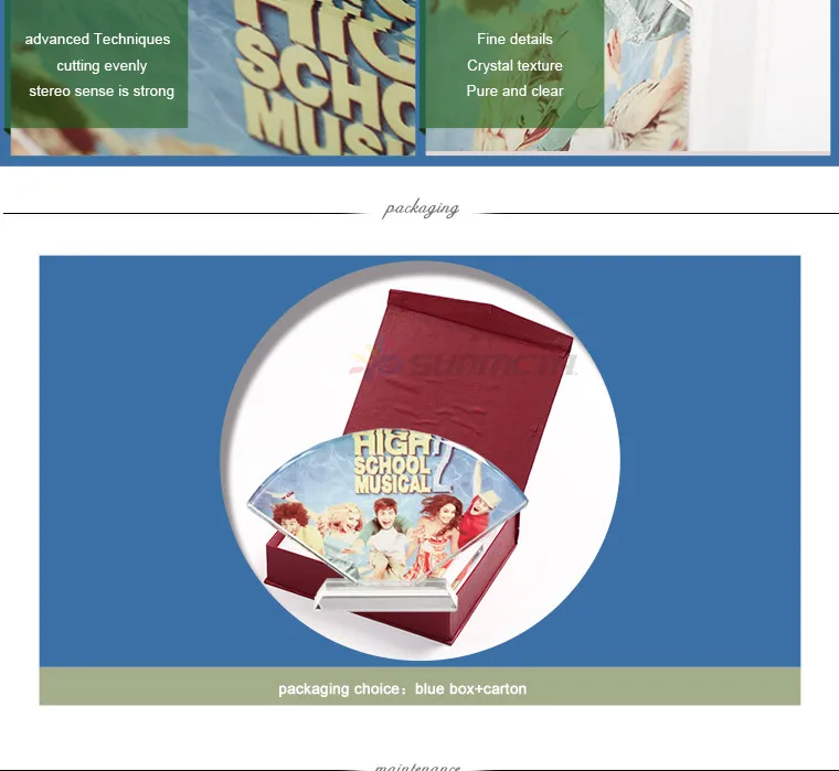 Home > Products > Sublimation Crystal > Fancy Crystal Novelty Business Gift Fan Shaped Crystal Cube Photo Frame