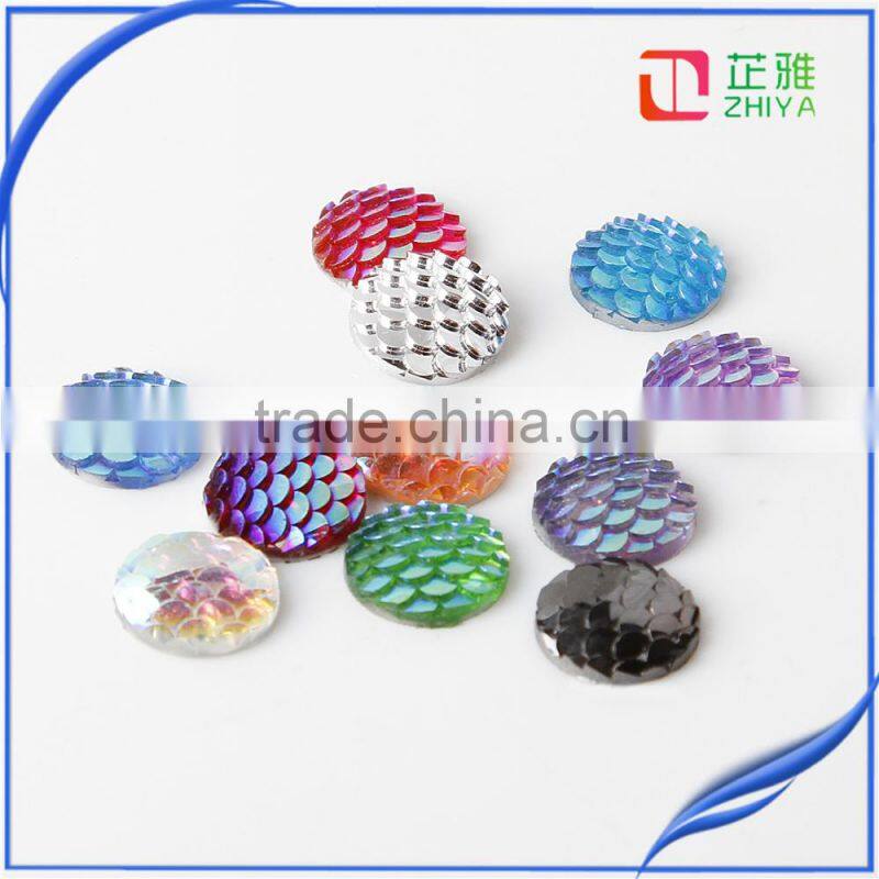 DIY 10mm/12mm ab Color Flat Back Cabochon Fish Scale Resin/plastic/acrylic Cheap Beads
