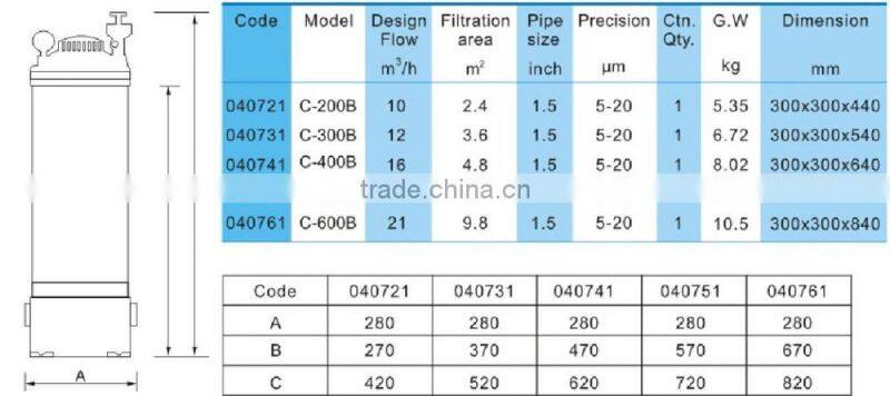 l Simply control user friendly various specifications for customers selections, cartridge element can be reused after cleaning.