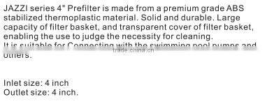 JAZZI 2016 Hot Sale Low Price Prefilter , swimming pool pump suppliers , pump 036003