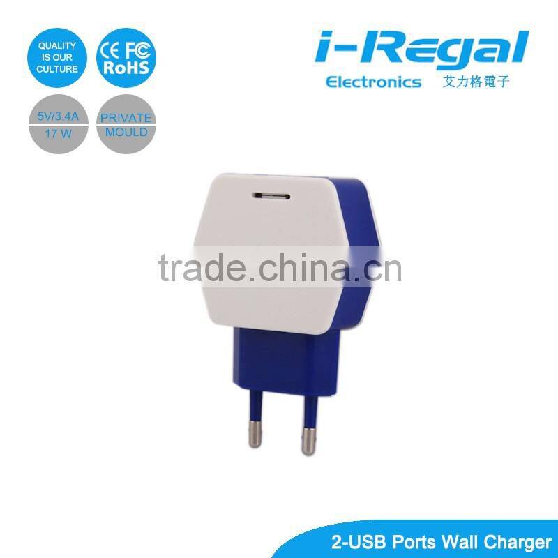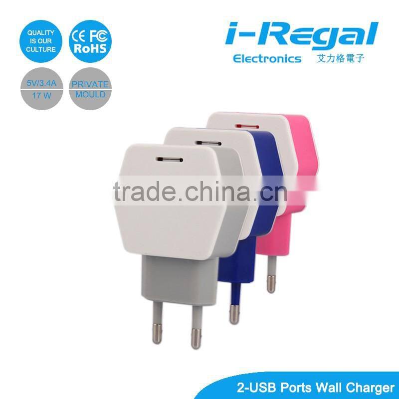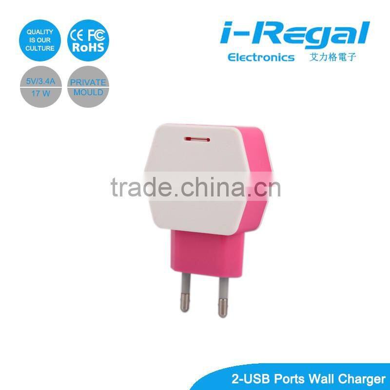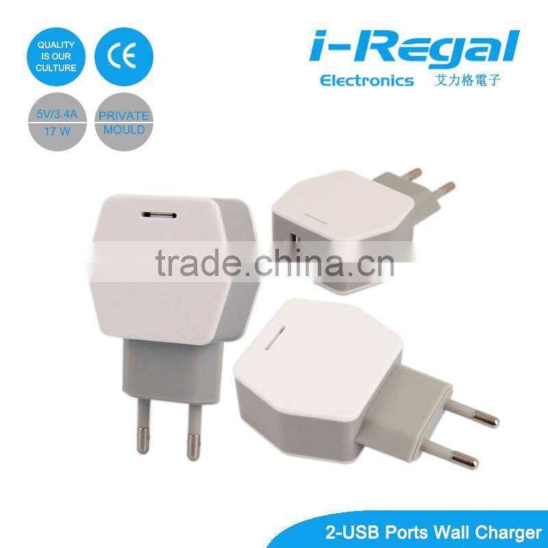 New Products With ce Certificate for 2016 5V 3.4A eu Plug Usb Wall Charger for Smart Phones