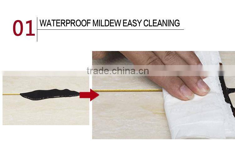 J Waterproof, mouldproof, not change color . Postive Double Component Gap Sealant use import of polymer resin and the curing reaction of copolymerization system, effectively prevent water infill into the gap, solve black, mildew and leaking problem of the bath crock, implement, lavabo, mesa and basins around the kitchen utensils and appliances, sanitary ware.