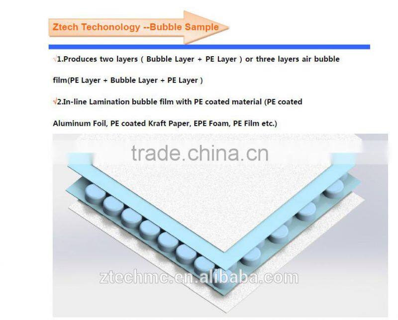 Ztech Plastic Machinery Manufacturing Co., Ltd. is a hi-tech enterprise focusing on design, R&D, production, sales and service of high quality air bubble film machines. Ztech locates in Lunjiao Town, Shunde district, Foshan City, Guangdong Province, an industrial town for the manufacture of plastic machinery and also known for its leading-edge research and development town. The main products of Ztech are that 2 Layers PE Air Bubble Film Machinery, 3 Layers PE Air Bubble Film Machinery, 5 Layers PE Air Bubble Film Lamination Machinery, 7 Layers PE Air Bubble Film Lamination Machinery, kraft bubble envelope machine, air bubble film (PE foam sheet bag making machine) etc.