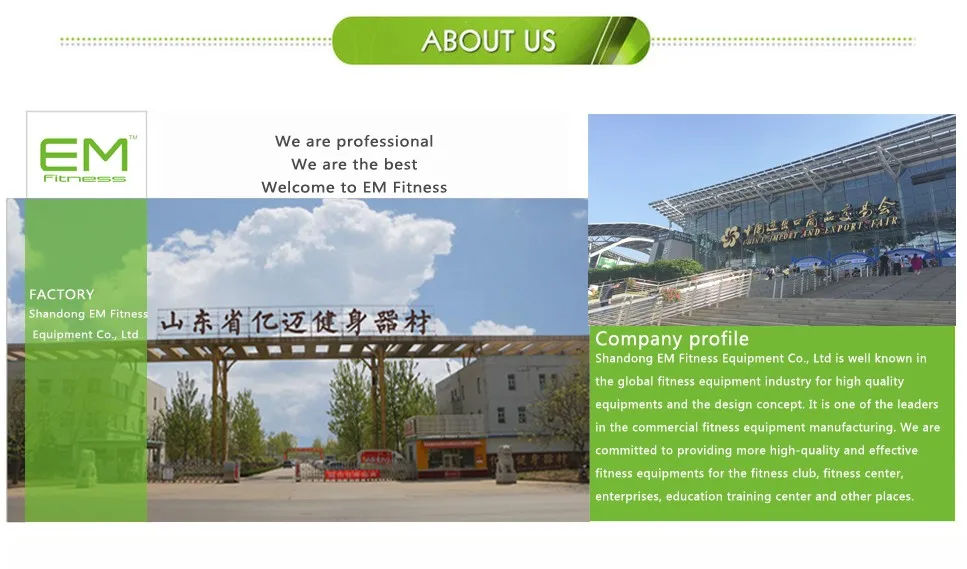 Shandong EM Fitness Equipment Co., Ltd are specialized in fitness equipments ,gym equipments,sports equipments,strength fitness equipmensts,cardio machines and so on.