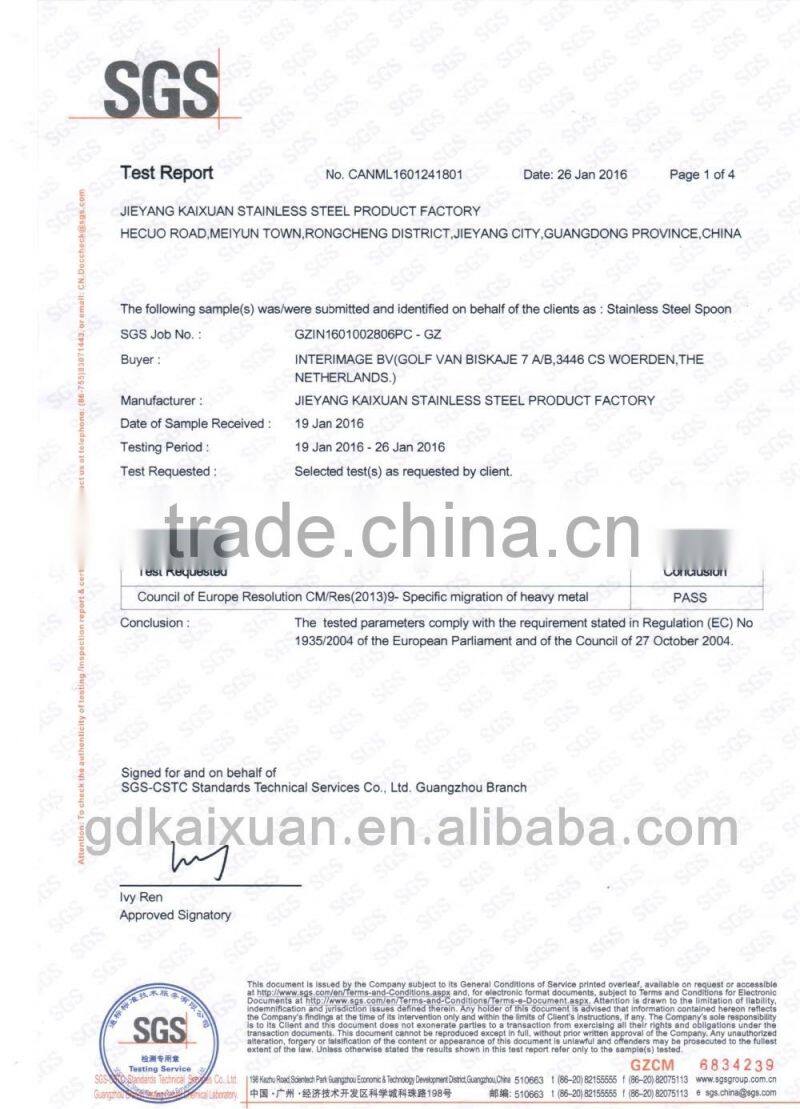 JIEYANG KAIXUAN STAINLESS STEEL PRODUCT FACTORY specialize in design, producing and selling stainless steel tableware, kitchenware, utensils and other metal products. We focus on management and quality control, have experienced management, stong technological capacity and high level production ability. We sincerely welcome the friends all over the world to our company and establish a win-win cooperation.