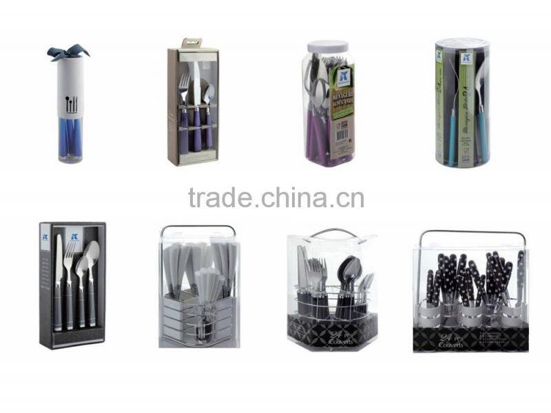 24 PCS Plastic Handle Stainless Steel Flatware Set KX-P019 PS PP