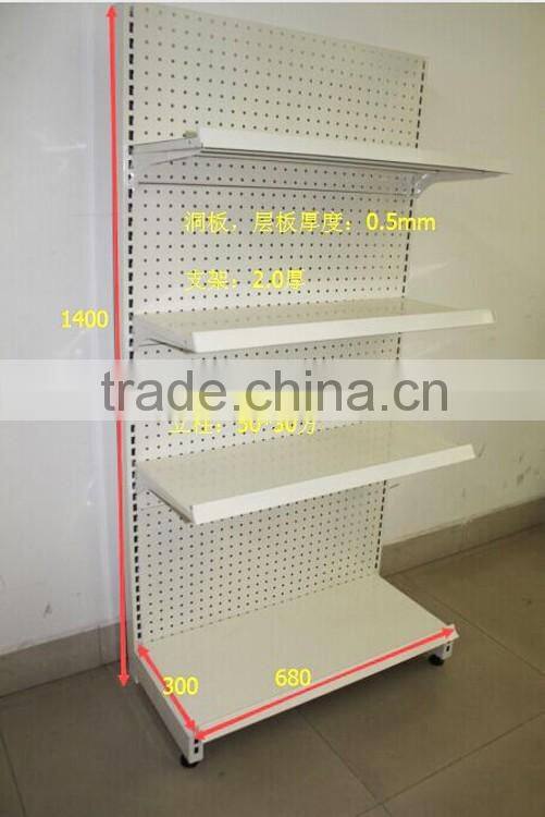 Steel Cantilever Shelf Single Sided White Peg Board With Three Shelves and Peghooks