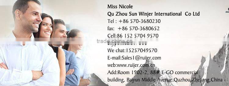 Zhejiang Quzhou Sun Winjer International Trading Co., Ltd. has gained rich experience and good credit standing during the external trade for more than 10 years. Our corporation has a group of good suppliers and customers.We can also provide all kinds of trading service for our clients, such as sourcing, purchasing, trading, following orders, quality control, shipment arrangement and daily communication with suppliers in China. All of our staff members are earnest and responsible. We warmly welcome your calls for any cooperation and business.