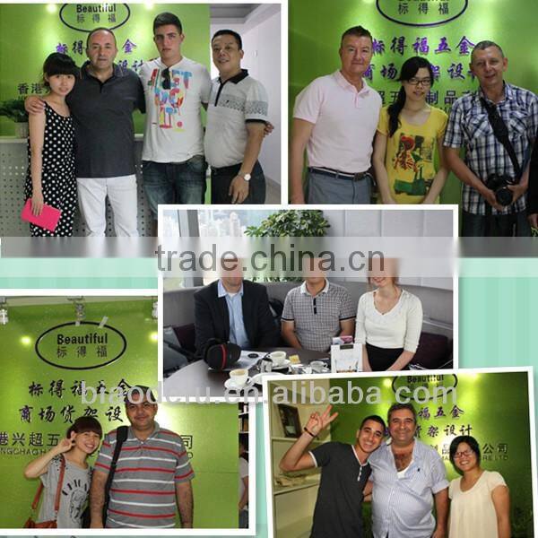 Beautiful Hardware Manufacture Ltd. is a professional large-scale manufacturer of all types of shop fitting, integrating development and production together. Our main products are display hooks, handbag display racks, clothing racks, wall strips, shelf brackets and related products. Our company was established in 2000, and we have engaged in metal shop fixtures area for many years. Our factory is located at the Foshan City, Guangdong Province. We also have office and showroom at Guangzhou, which is very convenient for customers' visiting.