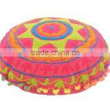 Suzani Mandala Round Floor Pillows Indian Embroidered Decorative Pillow Shams