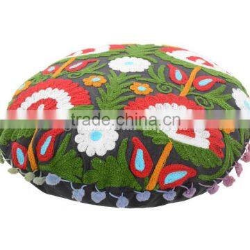 Indian Suzani Round Floor Pillows Cotton Ethnic Uzbek Embroidered Cushion Cover Boho Throw