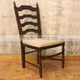Antique French Ladder Back Dining Chairs With Linen Upholstery